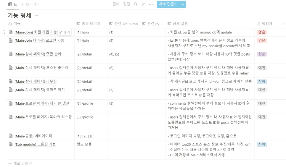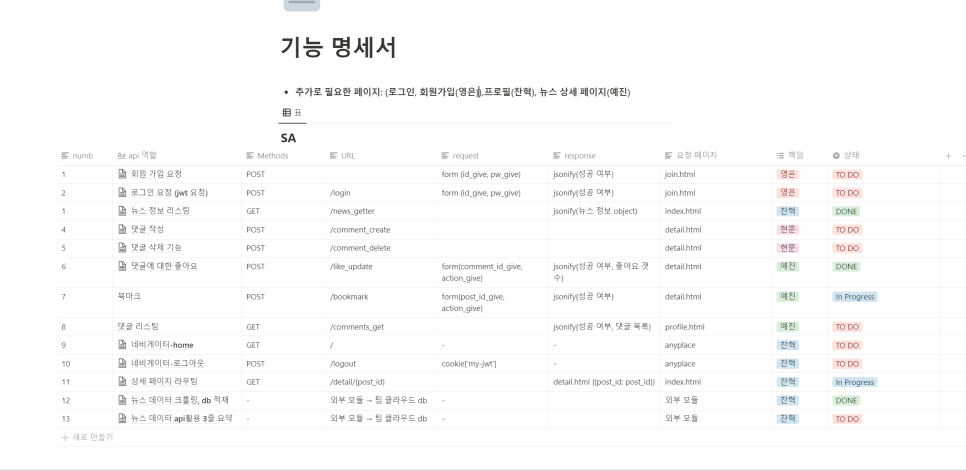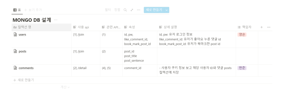 : api 설계를 진행했는데 진행해보고 나니 프론트앤드 관점으로 작업이 분리된 거 같다.일단 이런 관점에서의 설계도 진행해보고 나중에 백앤드 관점으로 컨버팅 해보기로 결정했다.