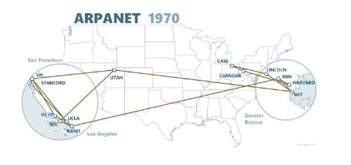 이 시기에 망 중에서 지금 인터넷의 전신인 '알파넷'이라는 망이 있었는데, 미국 국방성 산하의 고등연구계획국(ARPA)에 의해 개발되어 UCLA에 컴퓨터 과학부서에 초기 개발과 시험 운영 용도로 설치됐다. 그 때부터 스탠포드를 시작으로 미국 내 여러 대학들이 이 알파넷에 연결되면서 "연구자료 공유, 소스 코드 공유"등의 용도로 사용되었다. 결론은 "저 커뮤니티에서 소통할 수 있는 상태가 되는 것"이 망에 접속한다고 보면 될 거 같다.