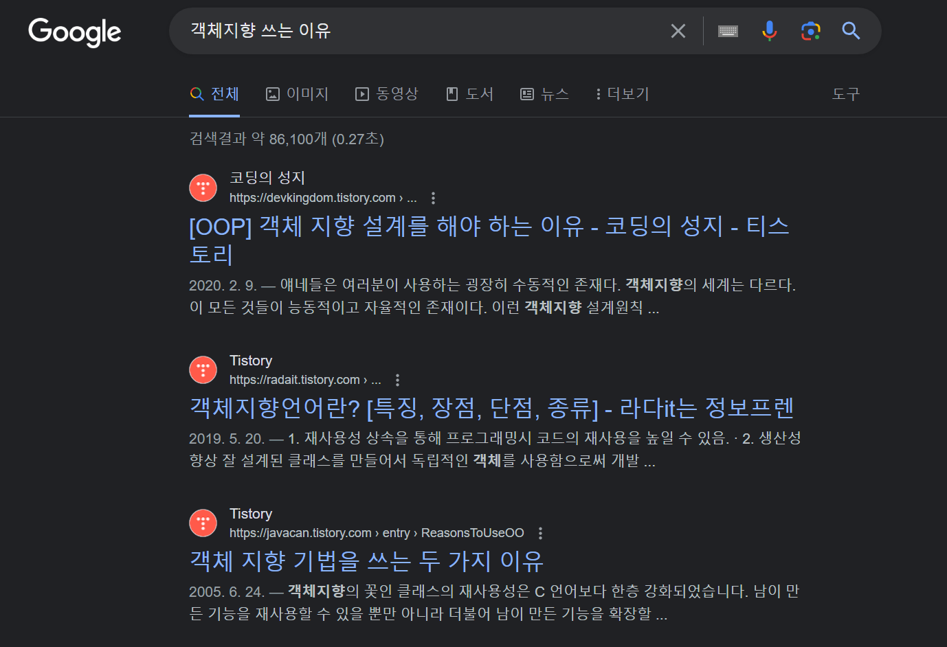 근데 웹 개발자가 되고 나서 이것저것 공부를 하다 보니 '객체지향'의 중요성을 강조하는 곳들이 많았고 최근에는 '객체지향의 중요성을 이해 못하면 개발자 자질이 없다'라고 가스라이팅 당한 상태이다.