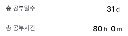2024 1월 달에는 짜투리 공부 시간을 모아 80시간 공부했다. 작은 시간들이 모여 큰 성취가 될 거라 믿어 의심치 않으며 노력할 수 있는 오늘 하루에 크게 감사하다.